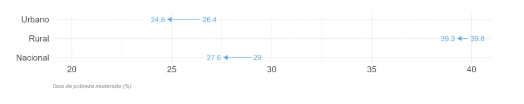 Pese a las noticias positivas sobre el Perú rural (caídas de 0.5 y 1.5 puntos porcentuales con respecto a 2023 y 2019, respectivamente) es vital no perder de vista que aún hay retos sustanciales. La tasa de pobreza en las zonas rurales del país alcanza el 39.3 %. Estamos ante un posible efecto combinado de migración rural–urbana y transformaciones en la estructura productiva rural. La dinámica migratoria podría estar influyendo en los patrones de pobreza urbana y rural, aunque se requieren estudios más específicos para confirmar esta relación.